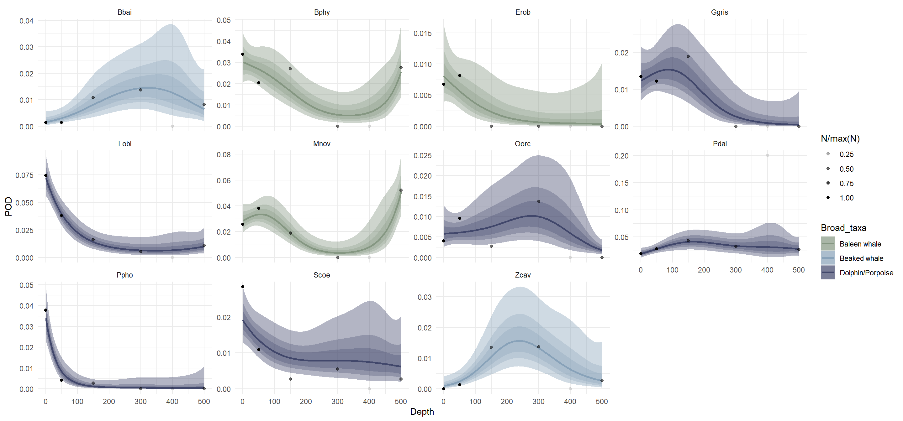 Question 2: Does species-specific POD vary with depth?